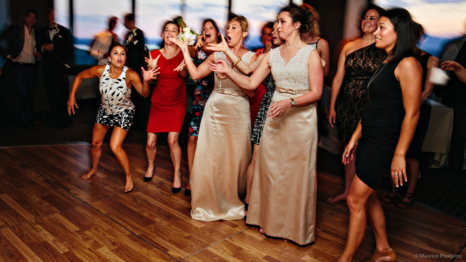 I had a great time shooting Matt & Natalie’s recent wedding. The ceremony was held at Our Lady of the Lake Church in Seattle. After a quick stop at QFC to re-stock beverages on the Party Bus, we visited Volunteer Park for some wedding party portraits, then headed on to the reception at the Columbia Tower Club downtown.