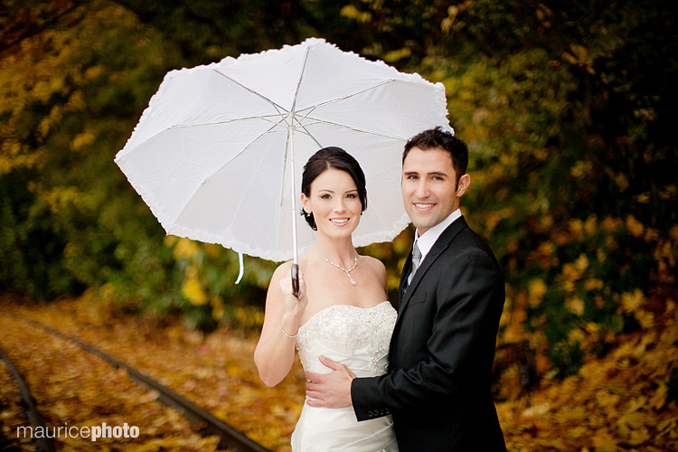 You might also wonder how Tiffany kept her dress from getting filthy standing on train tracks covered in wet dirty leaves…. Well I was prepared for that as well. I always bring a little piece of canvas that makes a perfect little platform to protect the dress 😉